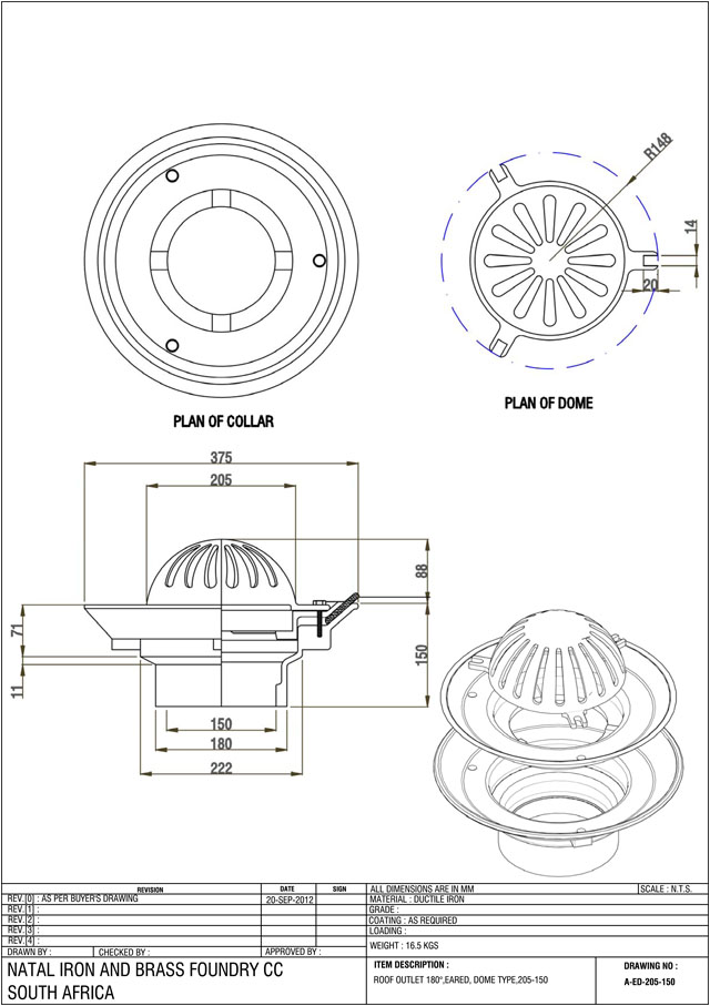 Roof Outlet 180 Degree, Eared, Dome Type, 205-150